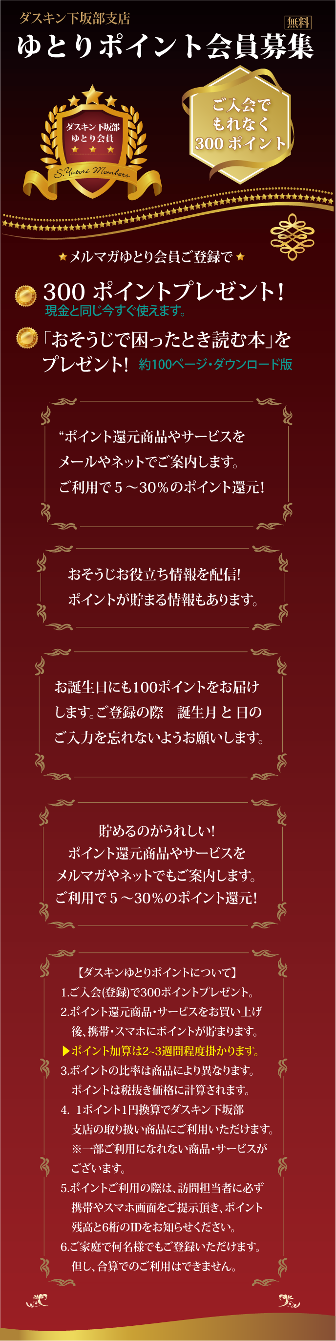 お得なダスキン「ゆとりポイント会員」にお気軽にご入会ください。